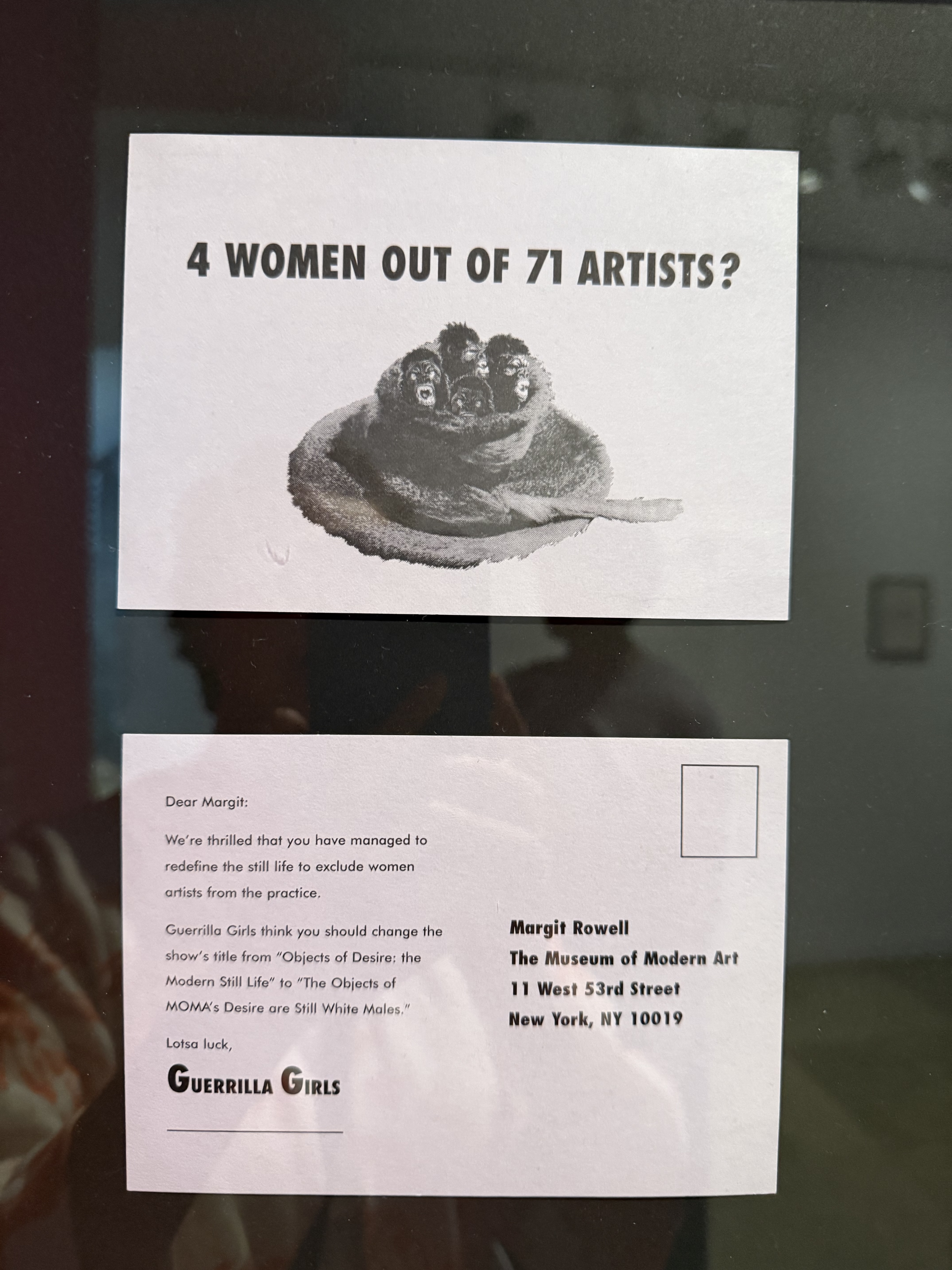 For those unfamiliar with them, the Guerrilla Girls are an anonymous collective of feminist artist-activists. They famously conceal their identities behind gorilla masks and adopt pseudonyms of deceased female artists, such as “Frida Kahlo” and “Käthe Kollwitz.” Their impactful activism began in the 1980s, a time when the New York art scene was smaller, and anonymity offered them protection from retaliation for challenging the status quo.