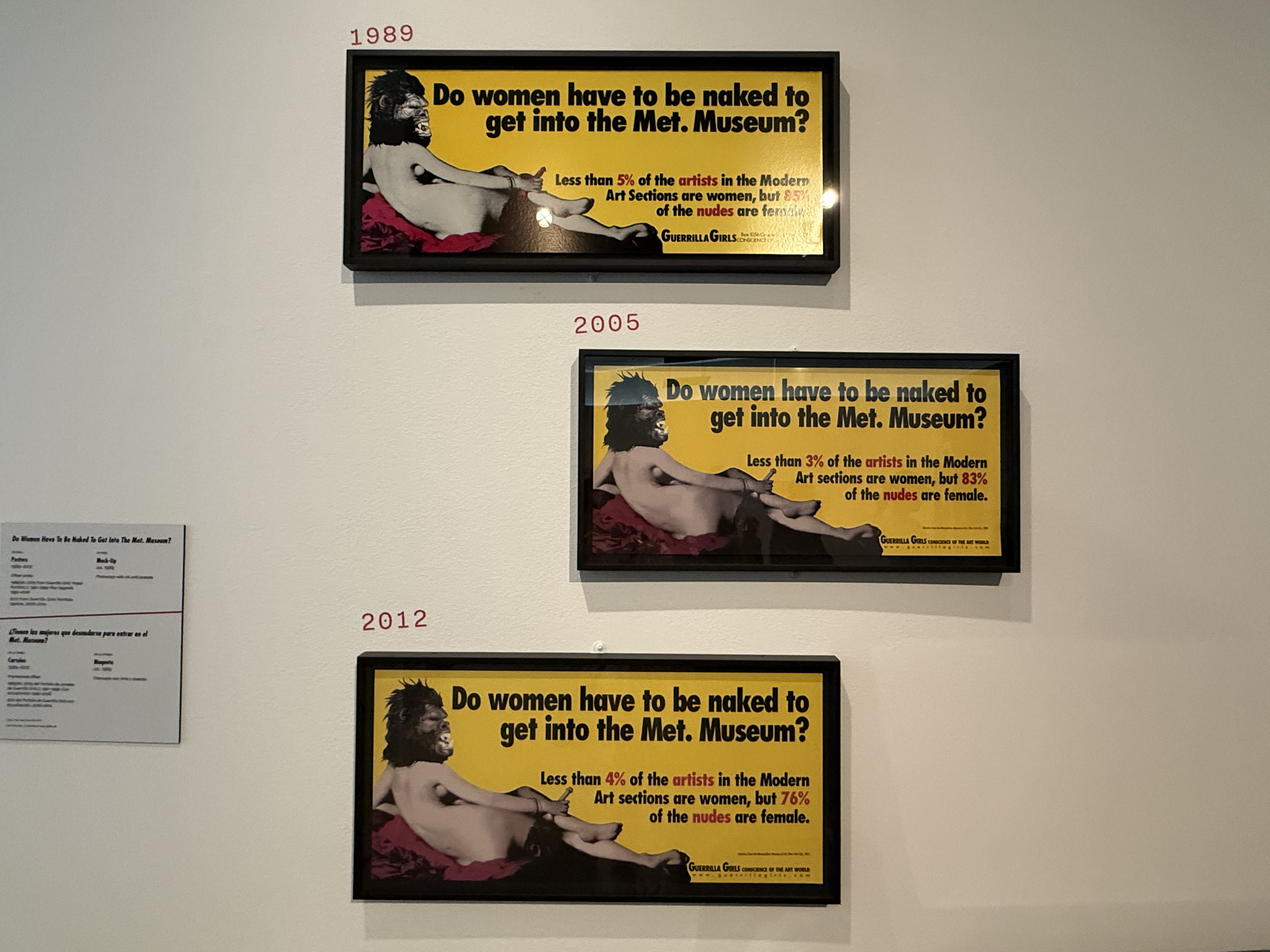 The Getty Research Institute is currently hosting a fascinating exhibition titled How to be A Guerrilla Girl, coinciding with the group’s 40th anniversary. I got to see the show with my dear friend Paloma. Until yesterday I had not realized that the seminal poster had been updated over the years.